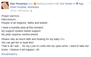 While at the Aga Khan, her husband called on Kenyans to join him in praying for his wife’s health. He said: