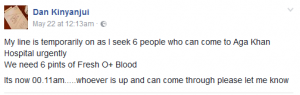 The situation of Dru appeared to have gotten worse, and at some point, her husband called for blood donations:
