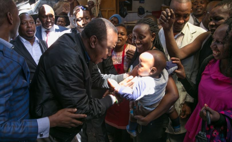 The tour was Uhuru’s first public appearance on ground level since he was declared president in an election which has been disputed by NASA.